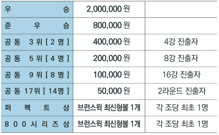 - 접수방법: 대회 접수는 온라인으로 하실 수 있으며, 브런스윅 공식 홈페이지를 통해 접수 하실 수 있습니다.