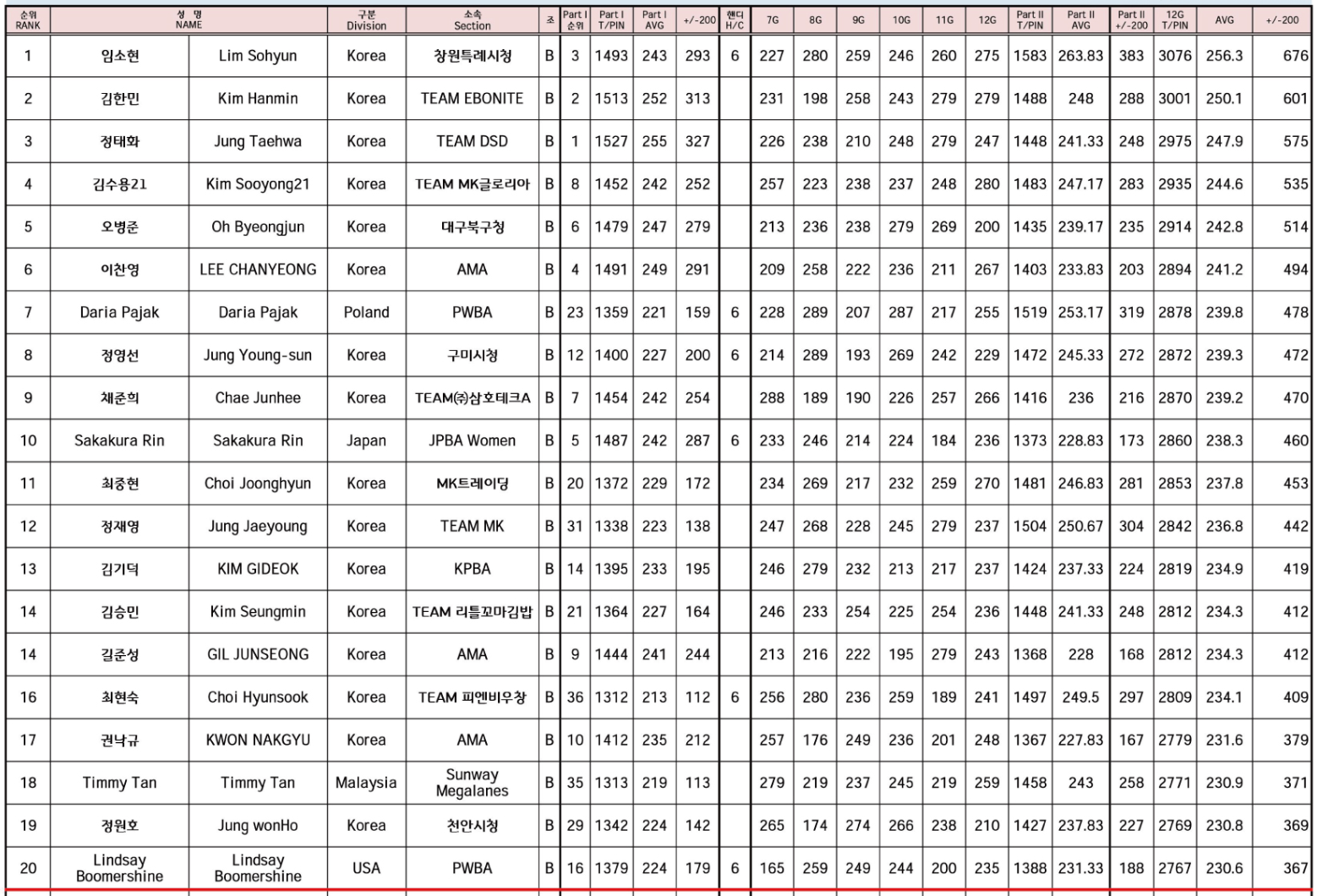 본선 경기는 총 2일이며, 하루 6게임 씩 총 12게임을 진행하여 20등 커트라인입니다.